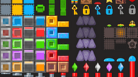 I've expanded the tilesets with new tiles - buttons, levers, keys, gems, coins, and various platforms for more options. Available for all variants (the screenshots show original and a dithered version...
